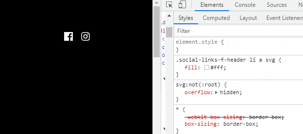 Now, icons are globally accessible on every page. To render an icon, we can just use <use xlink:href=”#002facebook”></use> , where href is “#” plus id value defined on symbol tag in the svgs-icons.php file. Here is an example of adding social icons with links: